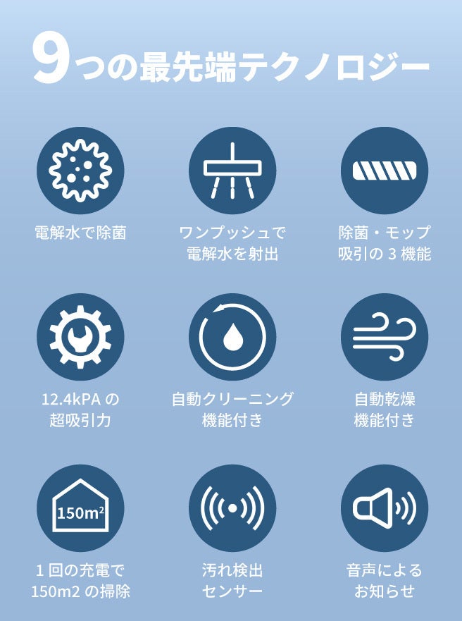また同時に雑菌繁殖の元となりかねない掃除機のローラーモップも同時に除菌しますので、カビ等の発生も予防し、悪臭などの発生も抑える事ができるなど非常に優れた機能を持っています。