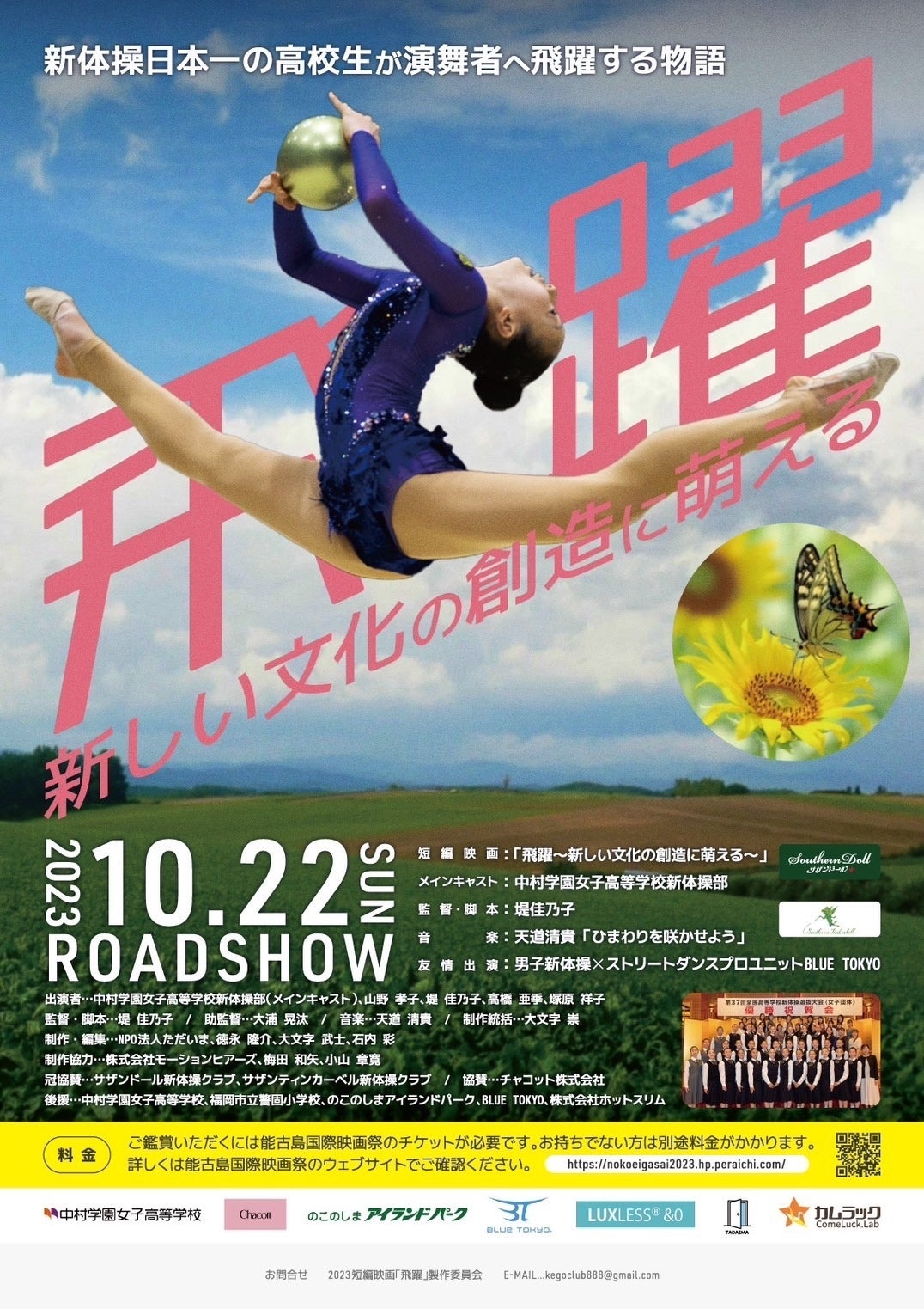 私達は、福岡県や東京都などで「新体操クラブ」を運営している代表の堤と高橋です。私達は「新体操のプロの舞台を創りたい」という共通の想いに引き寄せられ、出会いました。新体操選手には、競技引退後に、新たな芸術舞台に立てる潜在能力があるので、私達が舞台創りやキッカケを作りたいと考えております。その為には新体操の魅力を知っていただきたく、能古島国際映画祭で短編映画(約20分)を上映することになりました。