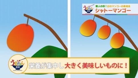 「シャトーマンゴー」は徹底管理されたハウス環境の中で、1本の枝に1つの実だけを栽培