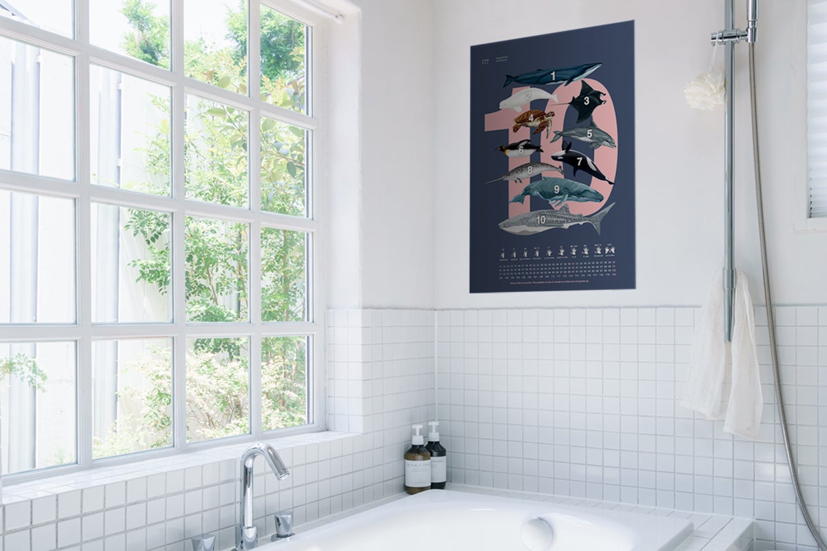 泳ぐ動物に限定して描いた「動物数字ポスター」はお風呂にぴったり。