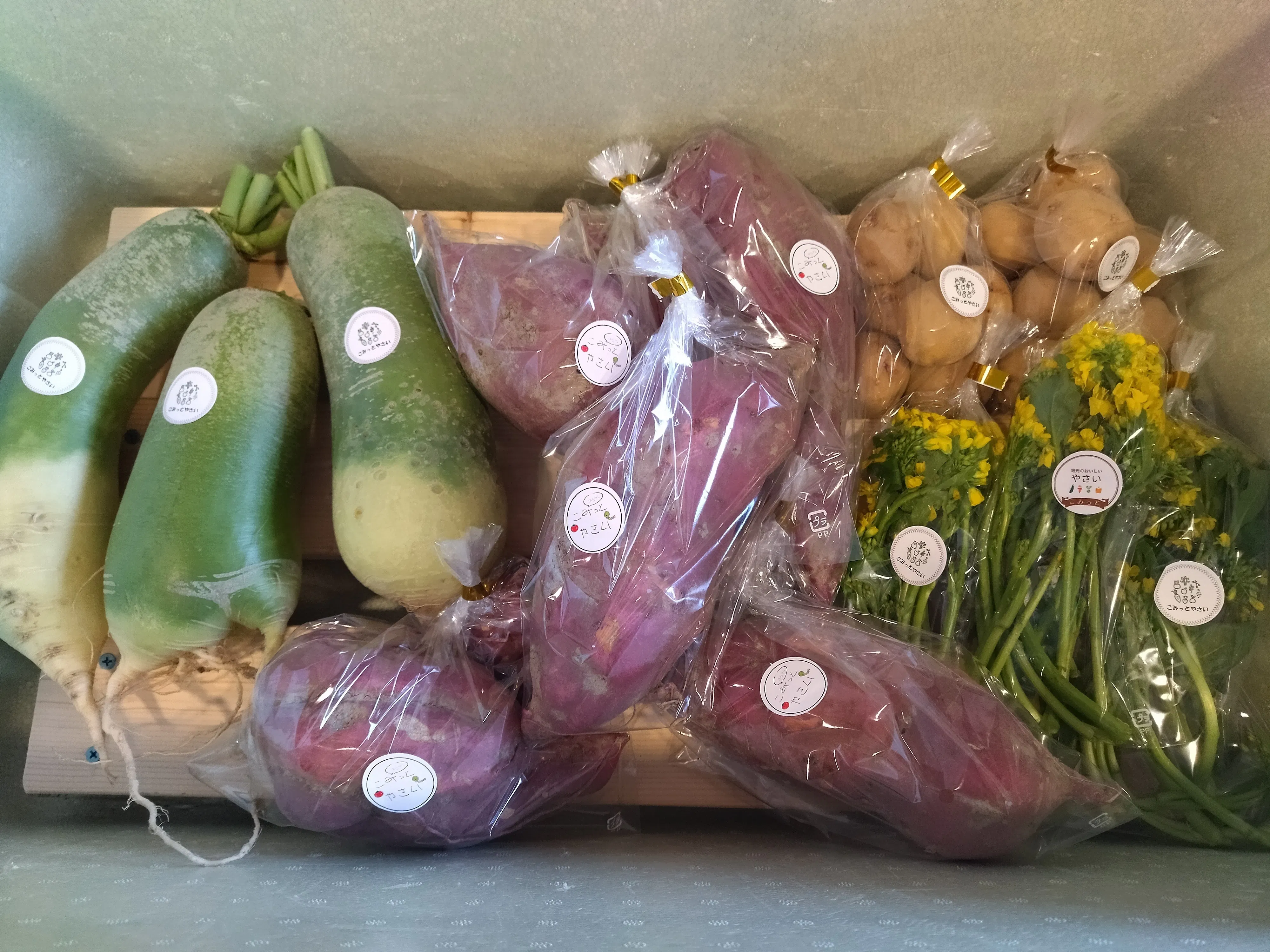 さて、こみっとでは地元のクオール薬局さんにこみっとの野菜直売所を設置させて頂いております。こみっと畑で育てた野菜はもちろん、地元農家さんから野菜を提供してもらい、こみっとで袋詰めやシールを貼り販売をしています。納品ドライブはみんなの大好きな活動で、納品に行くよ!と言うとみんなが玄関に集まってきます。