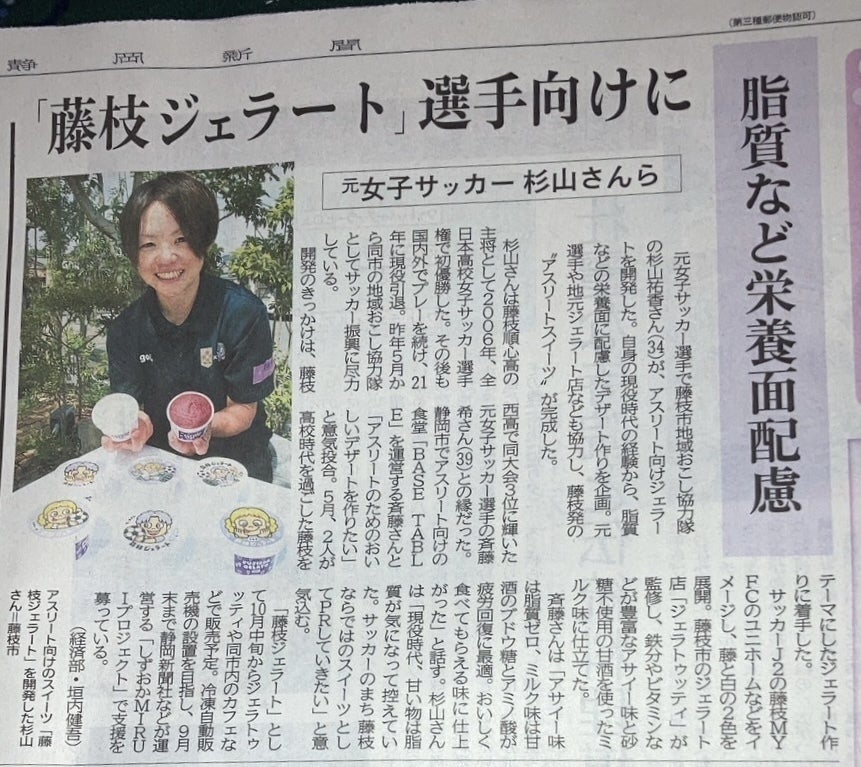 9/23付の静岡新聞に【藤枝ジェラート】の記事を掲載していただきました!