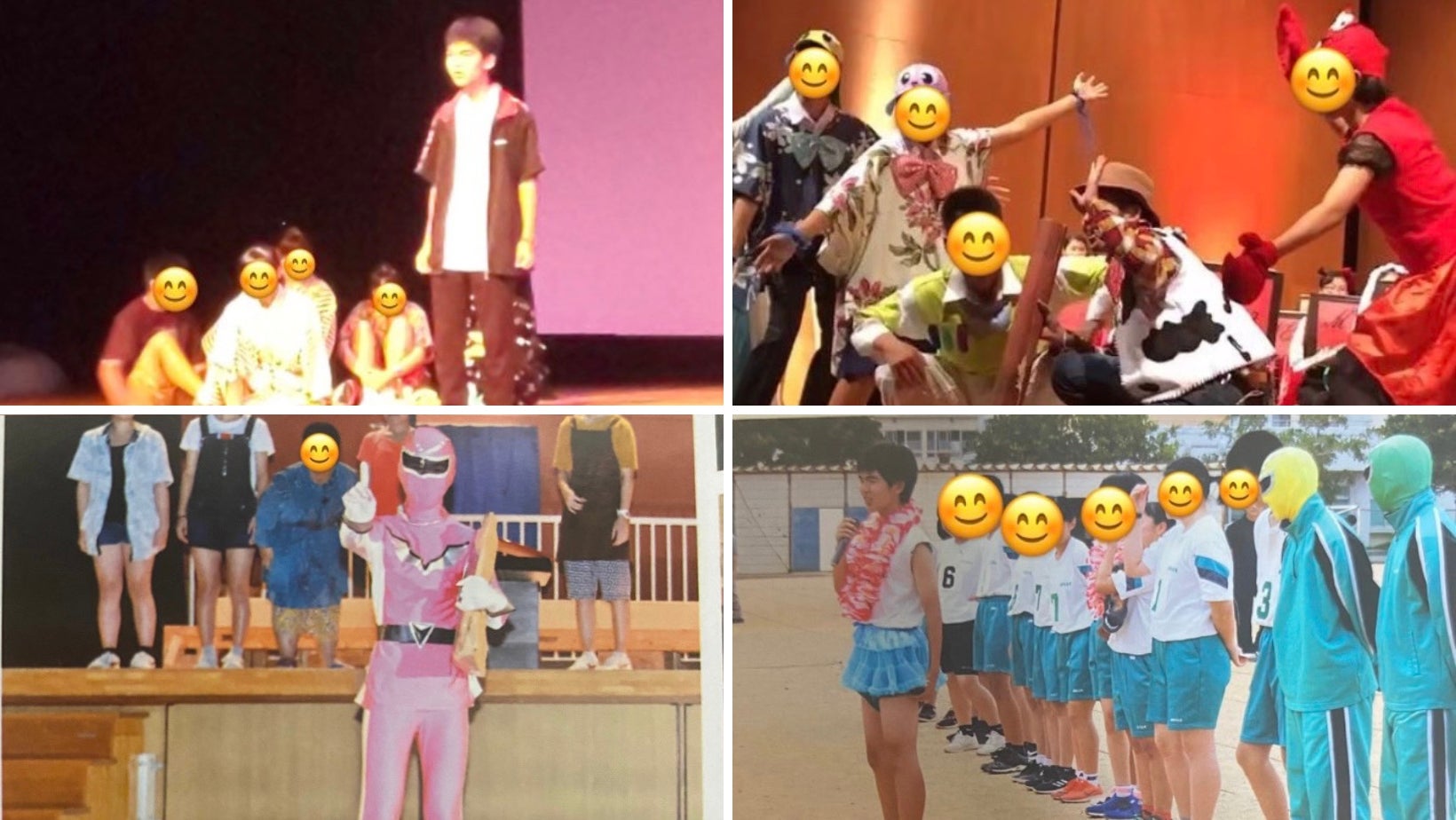 演劇同好会にも所属し、同好会の代表として活動したり、ヒーロー衣装を着て演技をしていました。(画像左下)