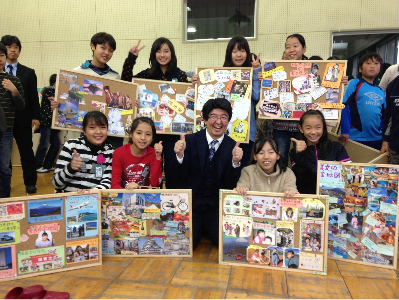 (大人も仲間たちといっしょに「宝地図」をつくりあげる)