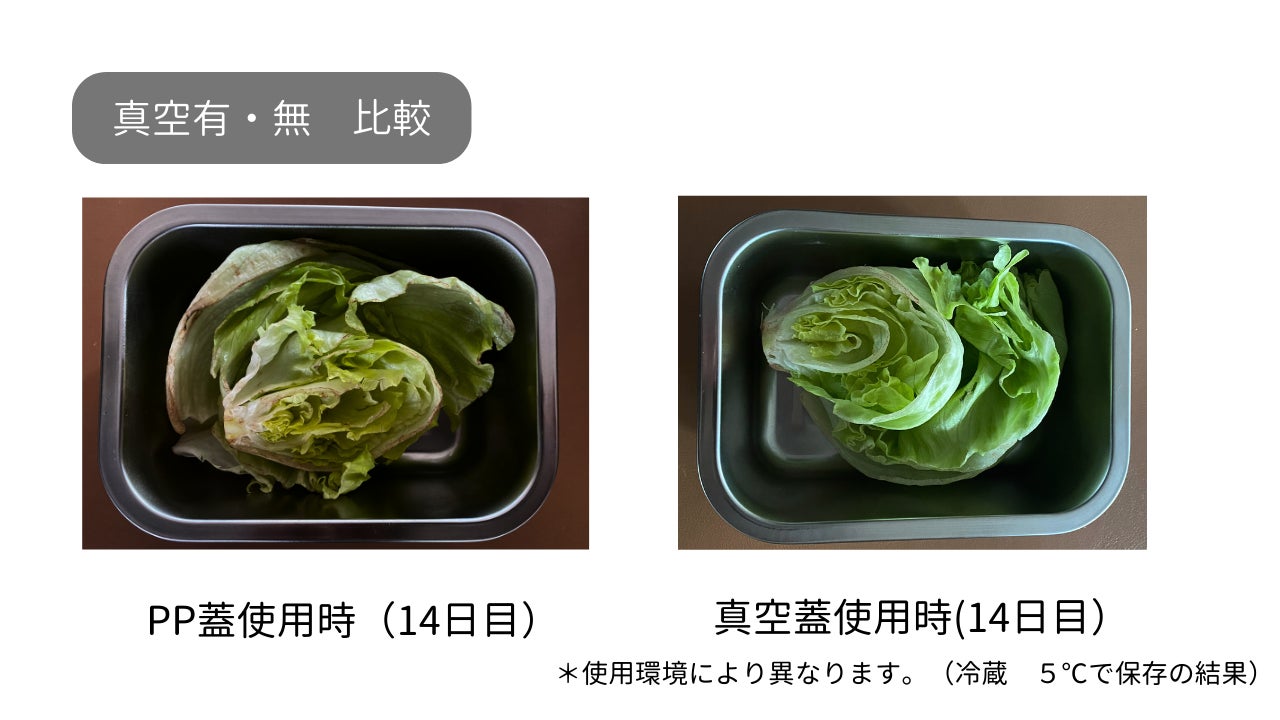 食品の鮮度を長持ちさせる真空蓋がついています。