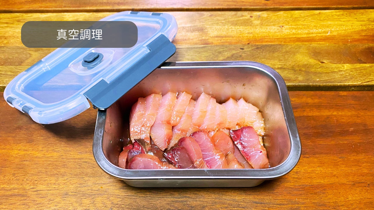 真空機能を使って短時間でお刺身をづけにすることも可能です。