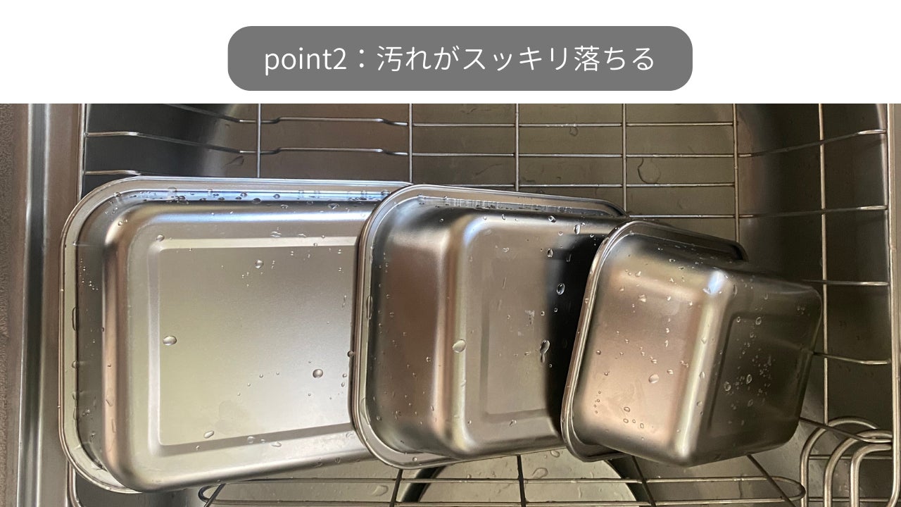 プラスチックだと気になるにおい、色移りもステンレスなので洗えばスッキリ落ち、汚れがつきにくいです。