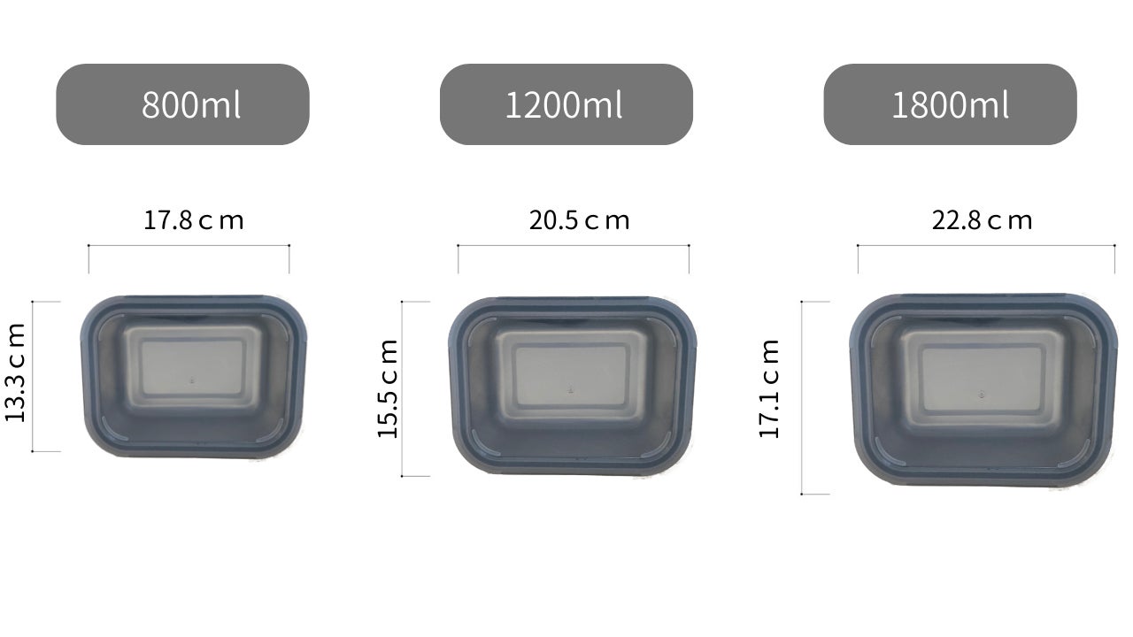 ■ サイズ: 小:800ml 17.8×13.3×7.5 中:1200ml 20.5×15.5×8 大:1800ml 22.8×17.1×8.8