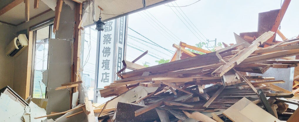 微力ながらも伝統保全に必死に取り組んできましたが、本業の仏壇の売上は年々縮小していき、コロナ禍での葬儀や法要の縮小化で追い打ちをかけるように仏壇の仕事が激減していき、今年5月31日をもって父親の代から約40年つづけてきた店舗を閉鎖することになりました。僕も約30年、ここの場所で仕事を続けてきたので解体されていく店舗を見ると寂しい思いがします。