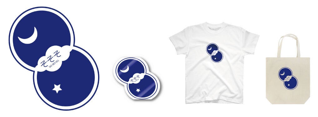 空に浮かぶ月、雲、星を組み合わせて作ったロゴを使ったグッズです。