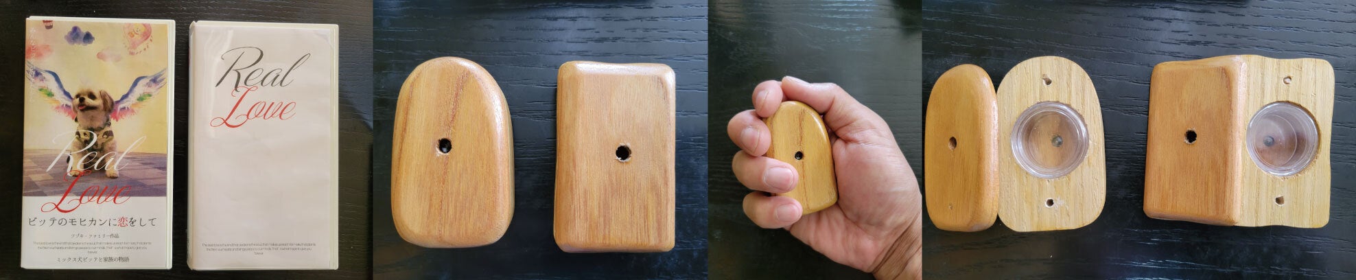 ペット位牌用のケースとしてVHS(ビデオテープ)ケース型の物も用意しています。ペットとの想い出の写真からデザインをつくることも可能です。