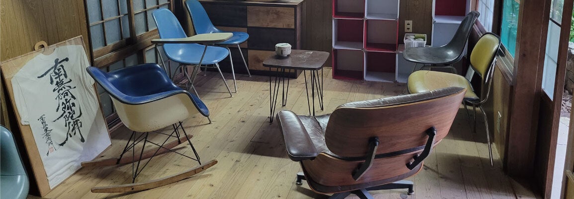 リフォーム後は僕が20年かけて収集してきた大好きなミッドセンチュリーのチェア、ポップな民芸品などでインテリアをまとめて心地よい空間を作り出します。そ・そ・そに訪れたら自分にマッチする椅子にぜひ座ってくださいね。