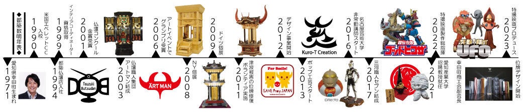 伝統仏壇の復興を目的としたアート職人集団「アートマン」を30代の時に立ち上げ、NYとドイツで個展を開催。世界での活動をきっかけに日本のポップカルチャーと工芸品を融合させたポップ工芸企画を立ち上げる。2011年に発生した東日本大震災で津波被害にあった位牌を120柱無料修復し、その時の経験から位牌などの供養文化の新しい形を模索し始める。2020年から地元商工会副会長に就任し、特撮映画を活用したまちおこし企画「特撮ツーリズム」を実施し、2本の劇場映画をプロデュースする。今までの経験を社会に貢献するために「一般社団法人1パーセントの社会貢献」を立ち上げ、社会問題などを独自のユニークな感性で楽しく解決できる仕組みを構築しているアートディレクターです。