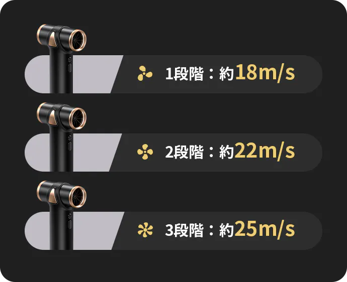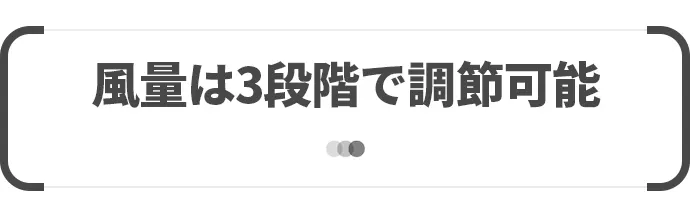 風量は3段階あり、必要に応じて自由に調節することができます。底側の電源ボタンを押すことで、簡単に切り替えることができます。(電源オン/オフはボタンを3秒長押しします。)