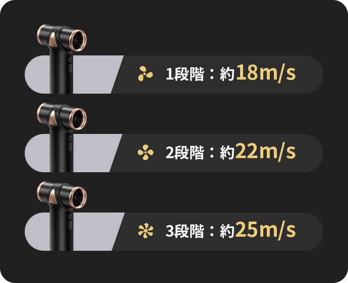 風量は3段階あり、必要に応じて自由に調節することができます。底側の電源ボタンを押すことで、簡単に切り替えることができます。(電源オン/オフはボタンを3秒長押しします。)