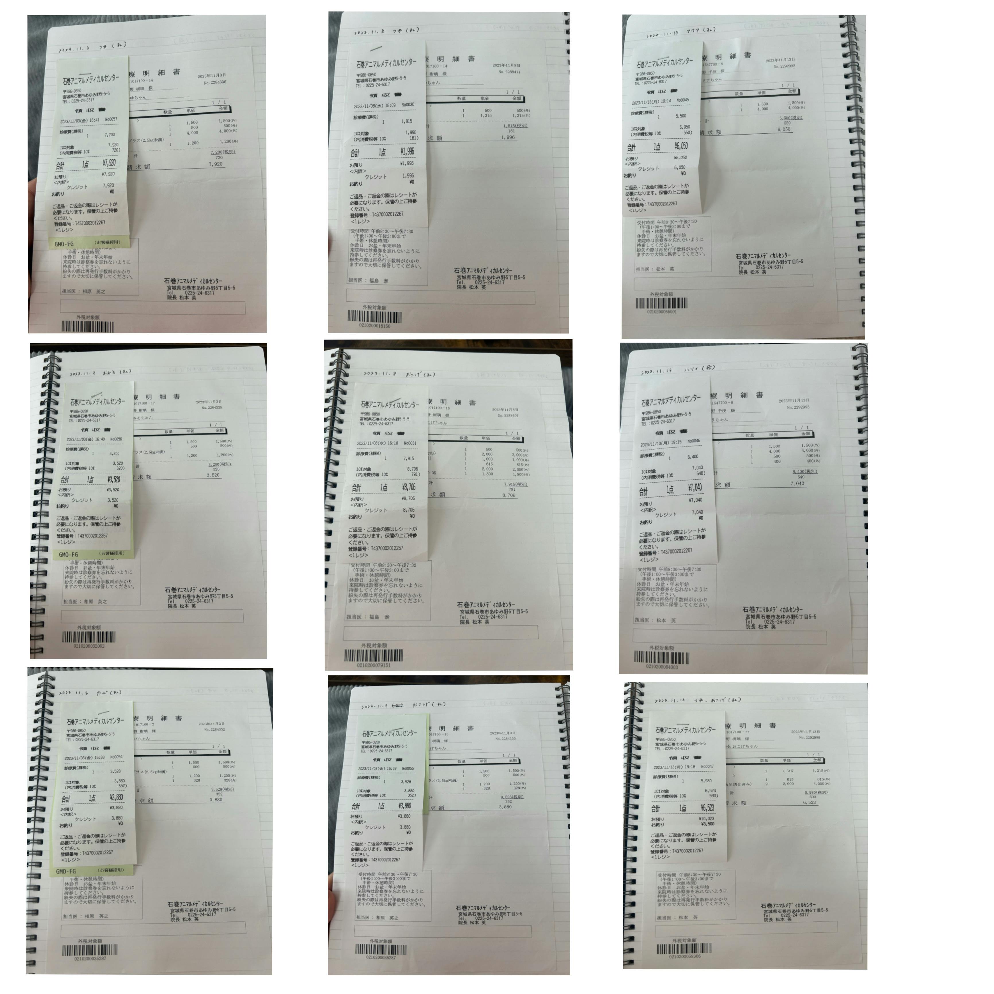 11月入ってからの病院にかかった費用の領収書になります。