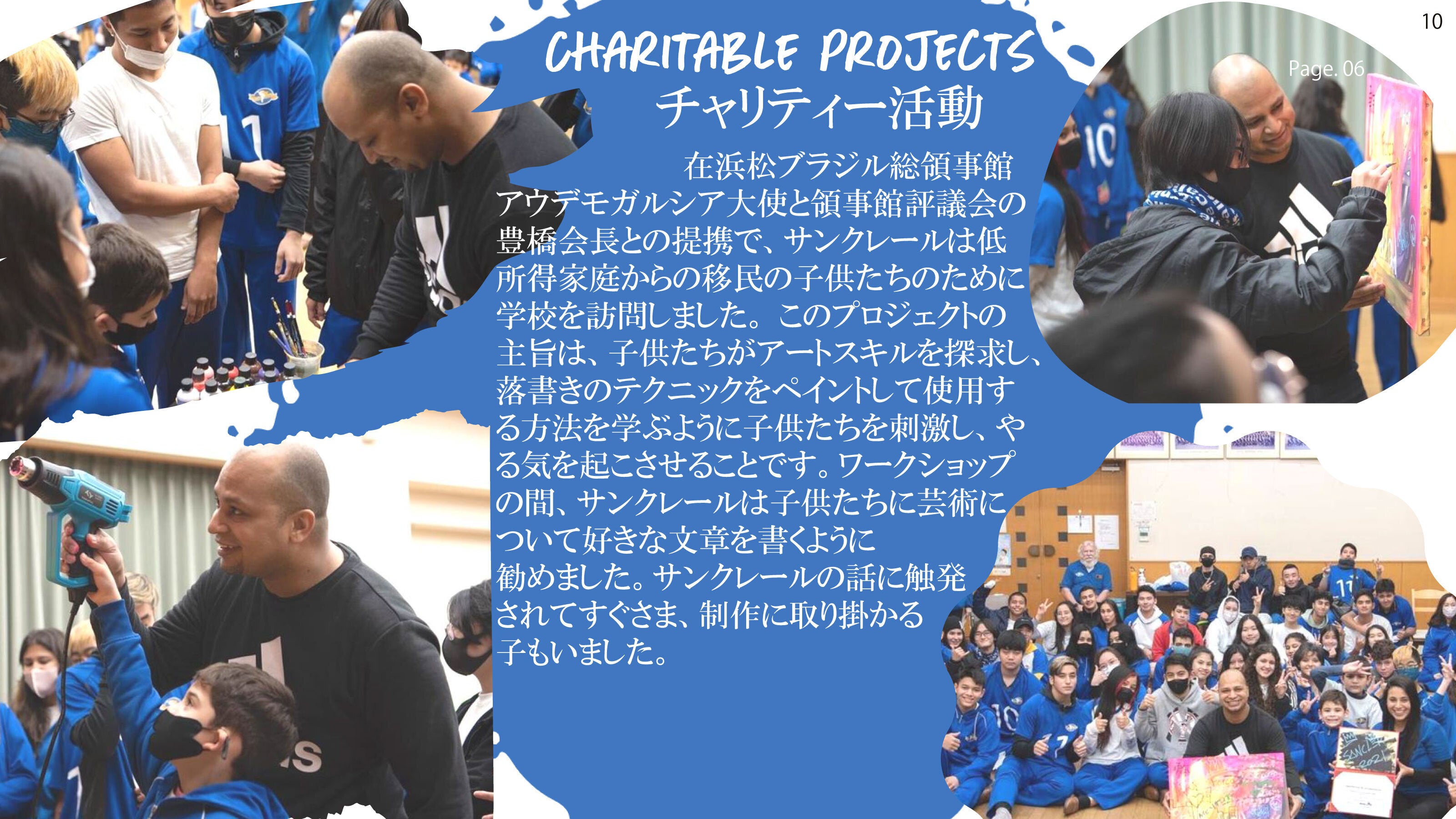 サンクレールはモチベーションを高める講演会やアートインセンティブ、実践的なワークショップを通じて、日本で生地やスニーカーに関する作品を展示し、自身の成功を貧しい子供たちに還元し、彼らを芸術へのサポートと励ましの手助けになることを夢見続けています。