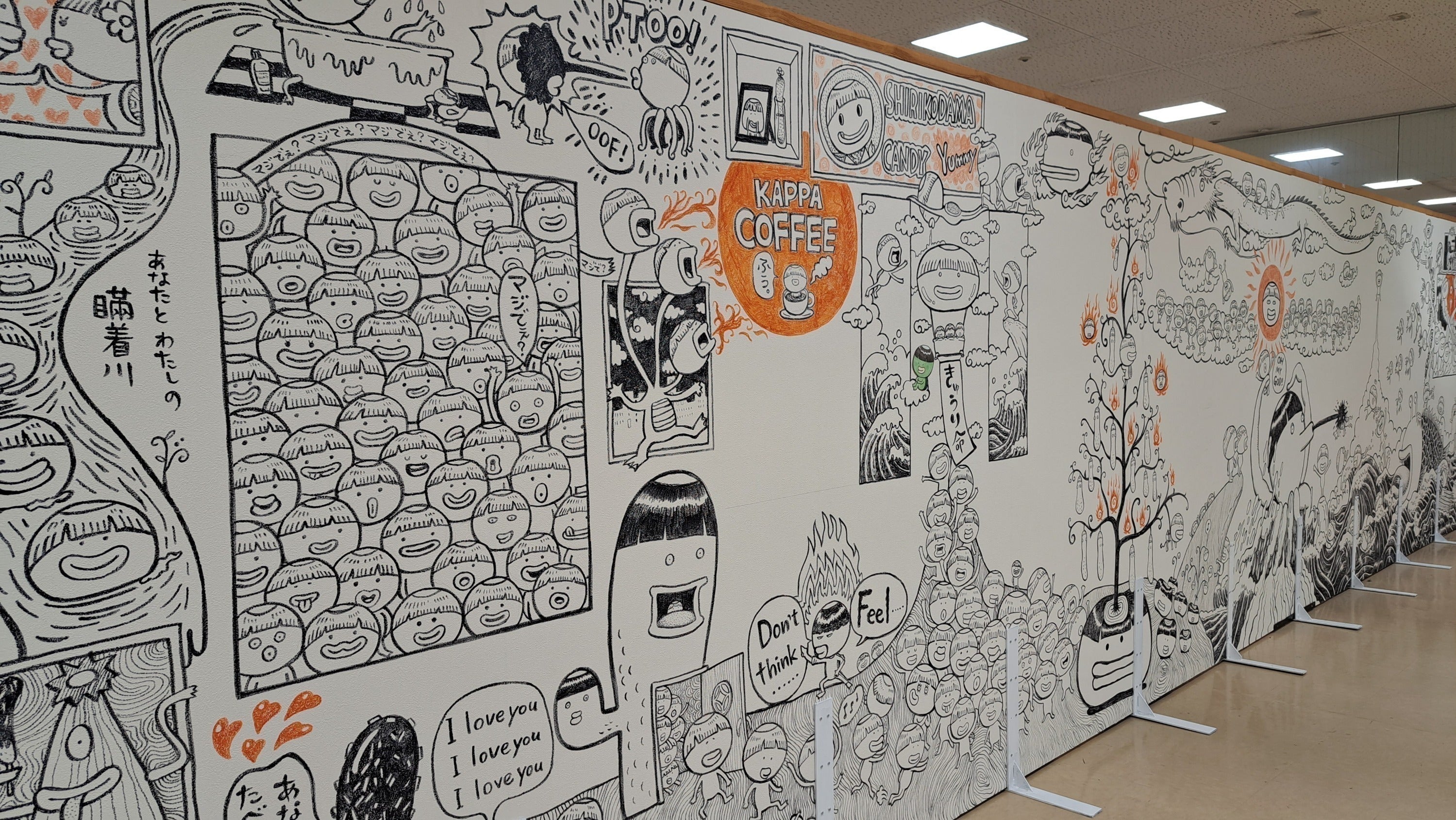 南砺市を元気にしたい!南砺市を応援したい!そんな熱い思いを持った南砺市内外の有志が壁主となって、南砺市の未来を生きる子供たちと一緒に、「ぎゃらりーアスモ」に巨大な壁を設置、笑顔の壁主さんと、漫画家の森みちこが描く似顔絵で壁を埋め尽くします。
