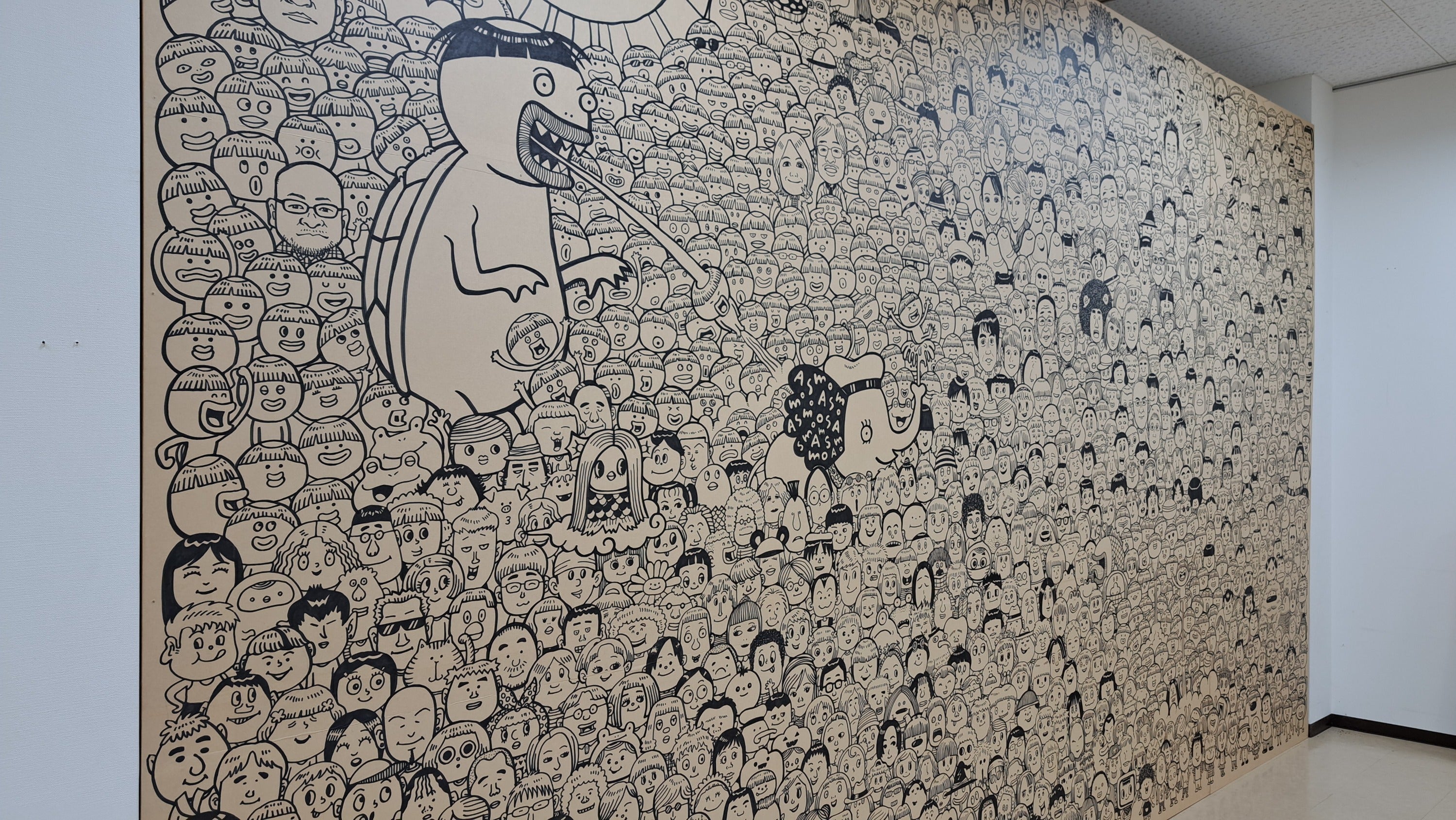 壁主権利。「ぎゃらりーアスモ」の壁に、南砺市を元気にする壁主さんの笑顔の似顔絵を描きます。