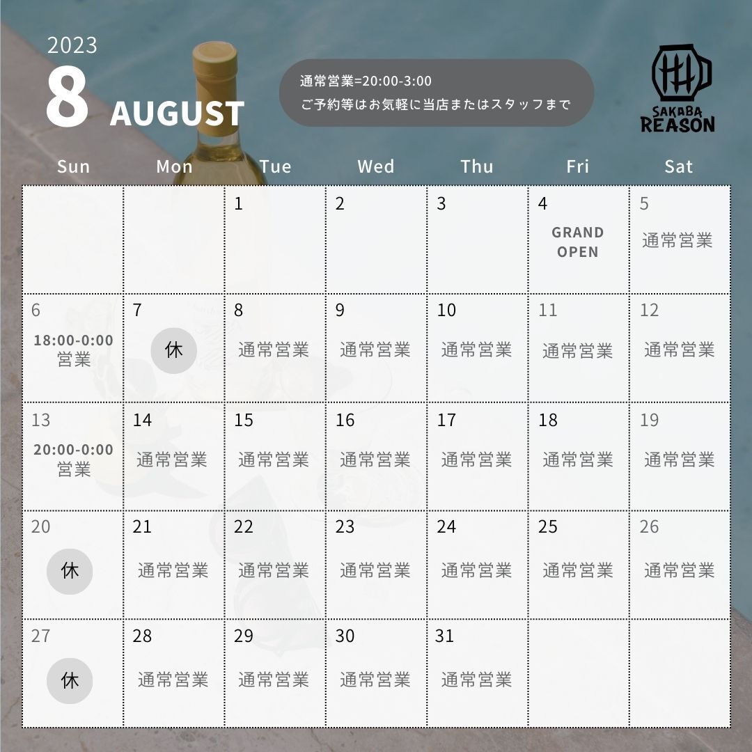 2023/08/08 16:318月の営業日を更新しました。尚、当店の情報はインスタグラムの投稿から確認できます!是非フォローの方よろしくお願いします!https://www.instagram.com/sakaba_reason もっと見る
