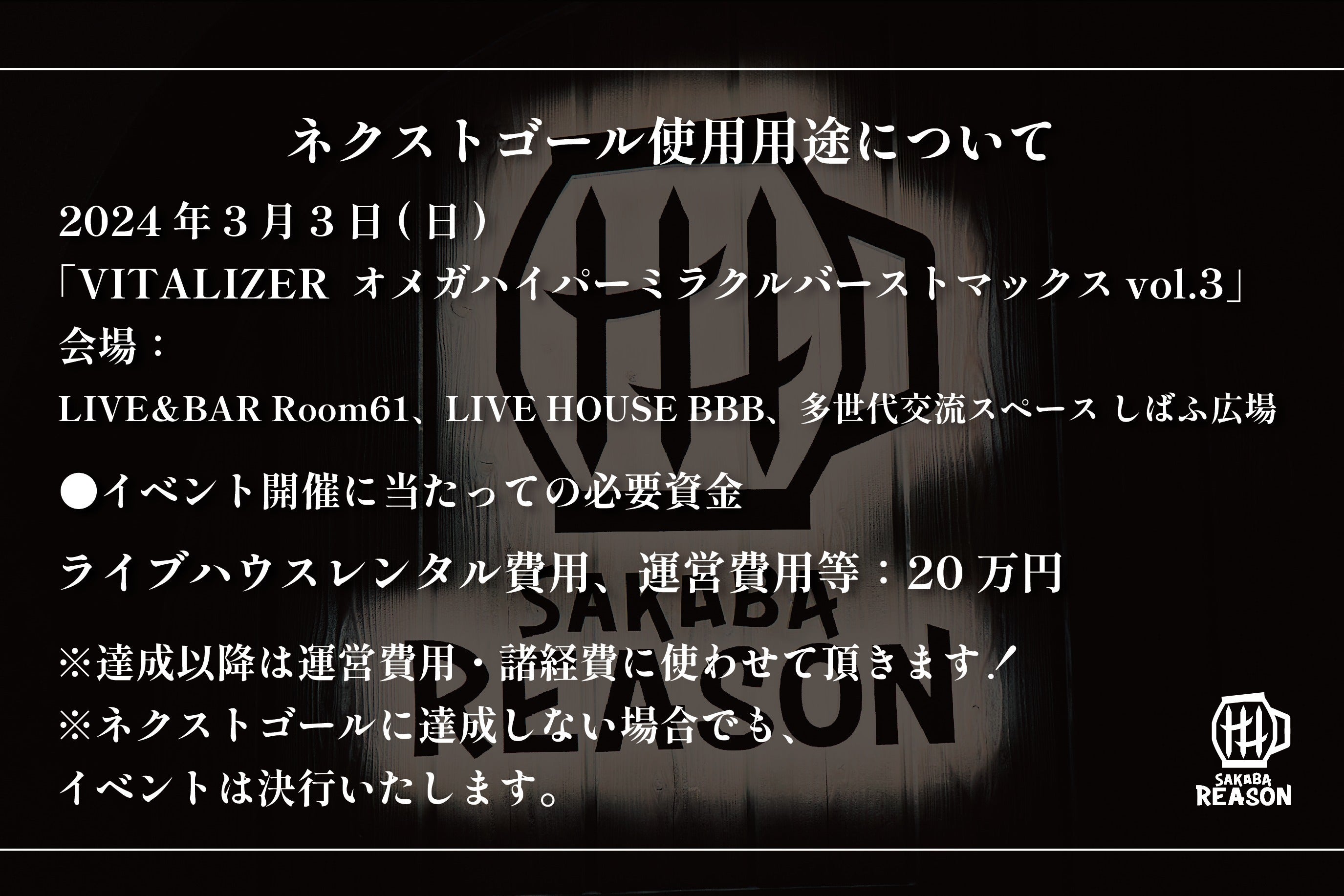 町と共にもっと深く、SAKABA REASONを通じてライブハウスに集まる人たちと力を合わせて、沢山の人に元気を与え、そして繋がることが出来るイベントを企画します。