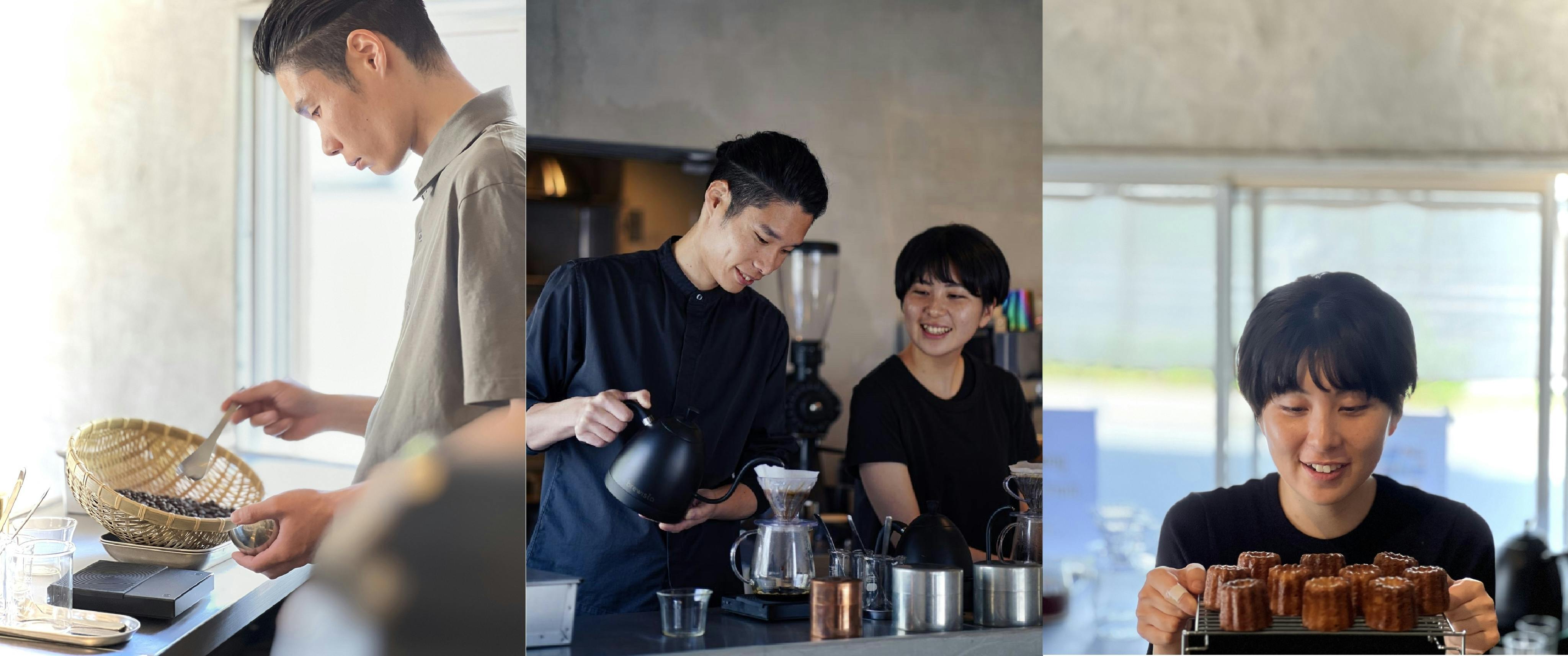 広島県白島北町で夫婦で営むコーヒー屋ninin(ニニン)の芝池佑介(焙煎担当)と芝池優果(スイーツ担当)です。