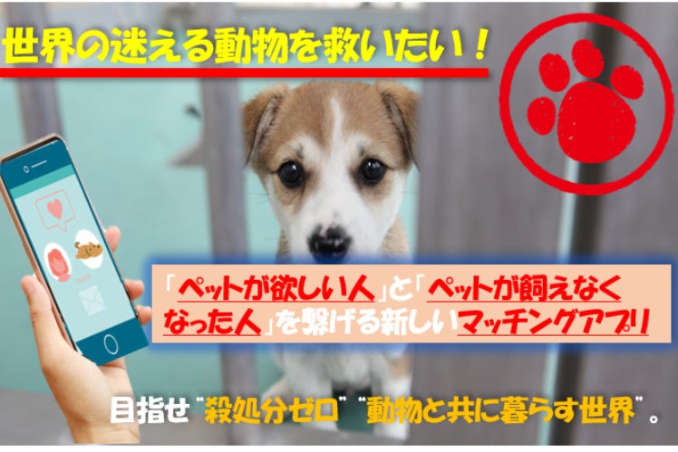 今回のプロジェクトで実現したいことは、こうした保護動物専用のマッチングアプリ(PET)を作成し、