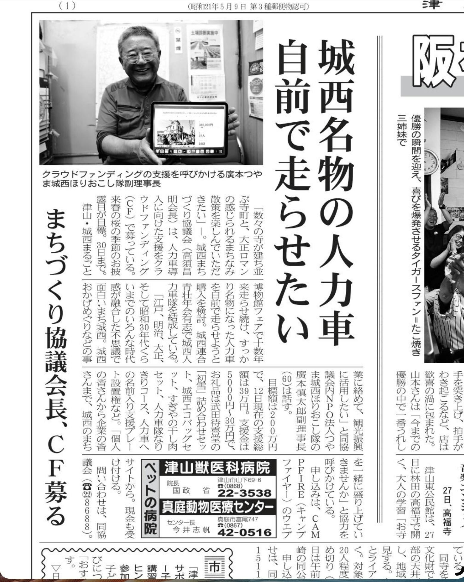 『津山市城西地区に人力車を購入して、元気いっぱい出雲街道を走らせたい』