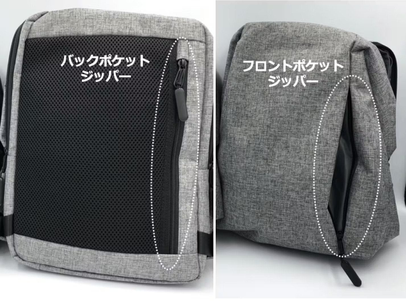 ④ 隠しジッパーなどで防犯対策もバッチリ