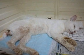 公園で倒れていたシロ太神社に遺棄されていたカン太