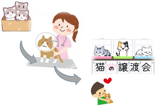 行政に窓口がなく、身内にも友人にも力になってもらえない、と、こちらに相談されてきます。小さな命をなんとか助けようと力の限りがんばってきましたが、小さな診療所はいよいよ限界をむかえつつあります。古い街並みが残る平野郷には、昭和以来野放しになってきたノラ猫問題があります。また、高齢社会の進行に伴い遺される動物がこれからますます増えると考えられます。もっとたくさんの力を結集して、みんなの問題にみんなで取り組む、みんなの場所が必要になりました。