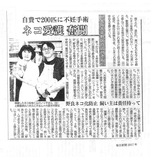 平野公園や平野川流域の小さな区域ではありますが、ずいぶんと外で暮らすノラ猫の数が減り、産まれる仔猫もほとんど見かけることなく、見境ない餌やりやトラブルもなくなったと、その効果が実感されています。