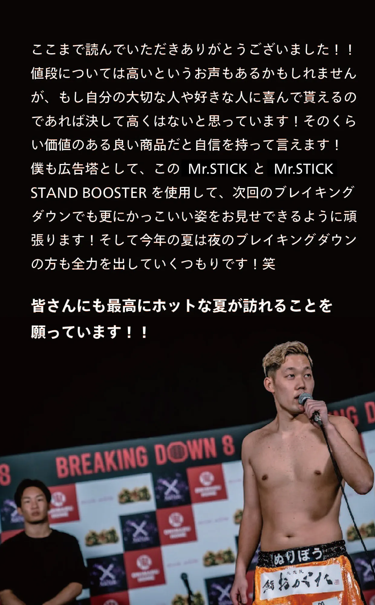 上記以外のプランかつMr.STICKが含まれるリターンを選択した方へ