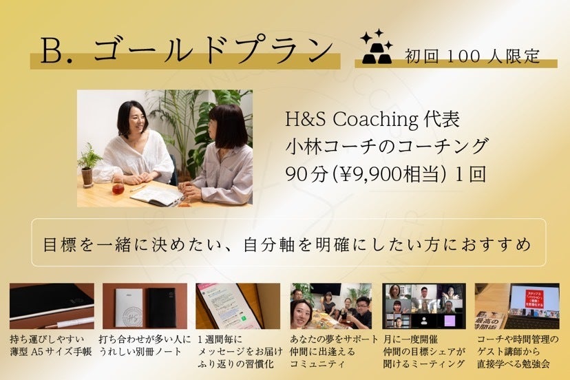 B:あなたの夢を応援!90分コーチング付 ゴールドプラン ¥9,900(税込) 100冊限定