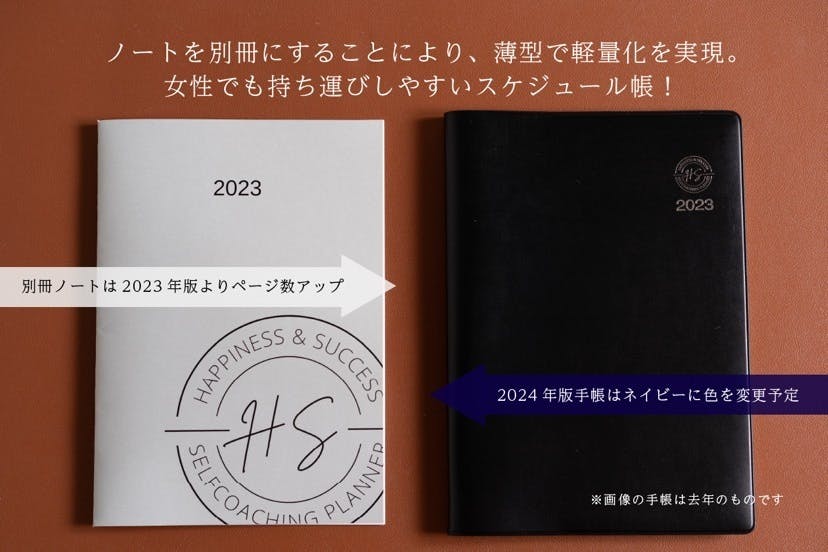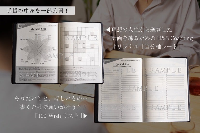 など、H&S Coaching独自のメソッドでお伝えしてきた内容が盛り込まれた、書くだけで夢に一歩近づく、毎日持ち歩きたくなるオリジナル手帳を作成します。2023年11月に郵送予定。