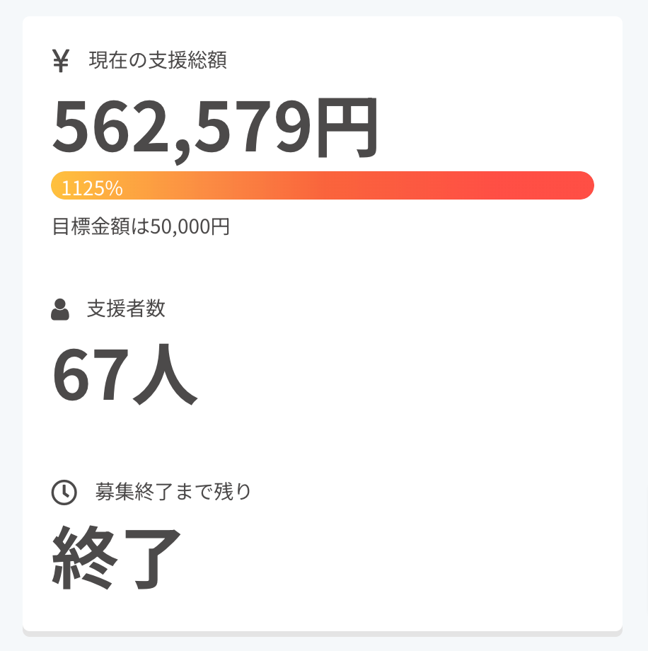 たくさんのご支援ありがとうございました!2023年12月30日、創線株式会社クラウドファンディングは無事終了し67人のご支援者様により562,579円の資金を集めることができました。想像の域をはるかに超えた皆様からのご支援と心に沁み渡る応援のメッセージ心より感謝申し上げます。今後の活動に関しましては下記SNSにて報告いたしますので是非フォローのほどよろしくお願いいたします。【Instagram】https://www.instagram.com/sousen_tablewear/【LINE】https://page.line.me/?accountId=576vgvgrまた、ECサイトでもamai食器が購入可能ですのでご興味のあります方はご覧くださいませ。【HP】https://tablewear.sousen.biz/今後とも創線株式会社スタッフ一同よろしくお願いします。