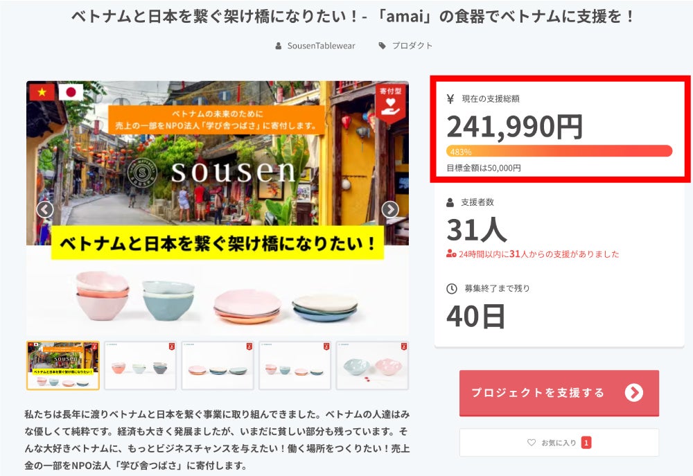 11月20日(月)12:00に公開したプロジェクトがわずか数時間で目標達成!