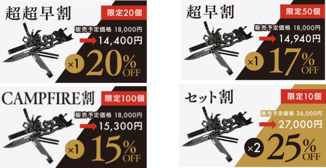 世界中から様々なマルチツールが出品され続ける中で2020年9月にKickstarterキャンペーンに成功したその2ヵ月後、Indiegogoでもプロジェクトを実施した結果、クラウドファンディングの目標金額を1日足らずで達成し、約1500個近くのユニットと数百個のオプションを販売し、両方のキャンペーンで大成功しました!