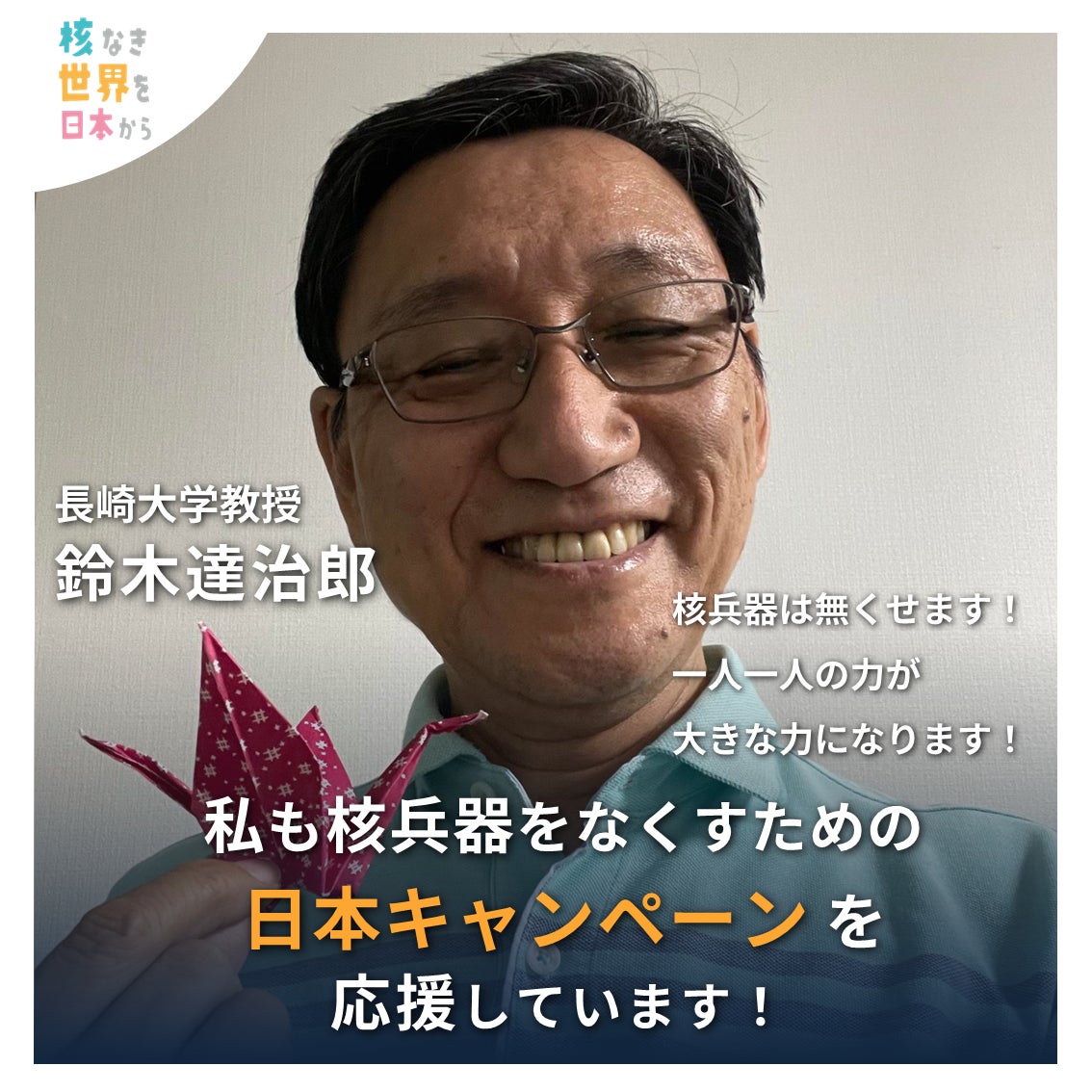 さらに長崎大学の鈴木達治郎教授からもメッセージが届きました。鈴木さんには8月6日の配信「それでも核兵器は必要ですか #核なき世界を日本から」に出演いただき、現在の核兵器の配備状況や日本の保有するプルトニウムが隣国の脅威になっていることなどをお話いただきました。