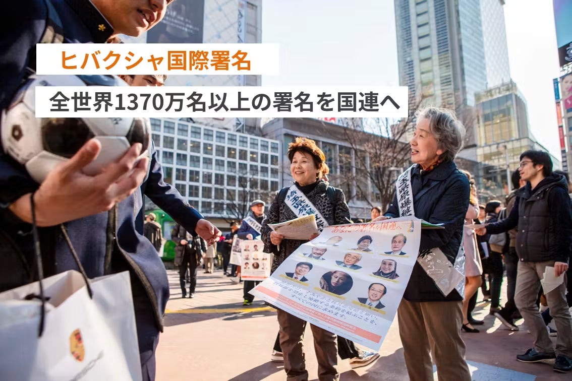 2016年、被爆者の呼びかけに応えて、日本のNGO・市民が幅広く集まり、「ヒバクシャ国際署名」(ヒロシマ・ナガサキの被爆者が訴える核兵器廃絶国際署名)を始めました。この運動は、全世界で1370万筆以上の署名を集めて、国連に提出し、2021年に終了しました。この署名運動は、核兵器禁止条約の重要性を世界に訴え、条約を成立させ、発効させるための大きなエネルギーになりました。