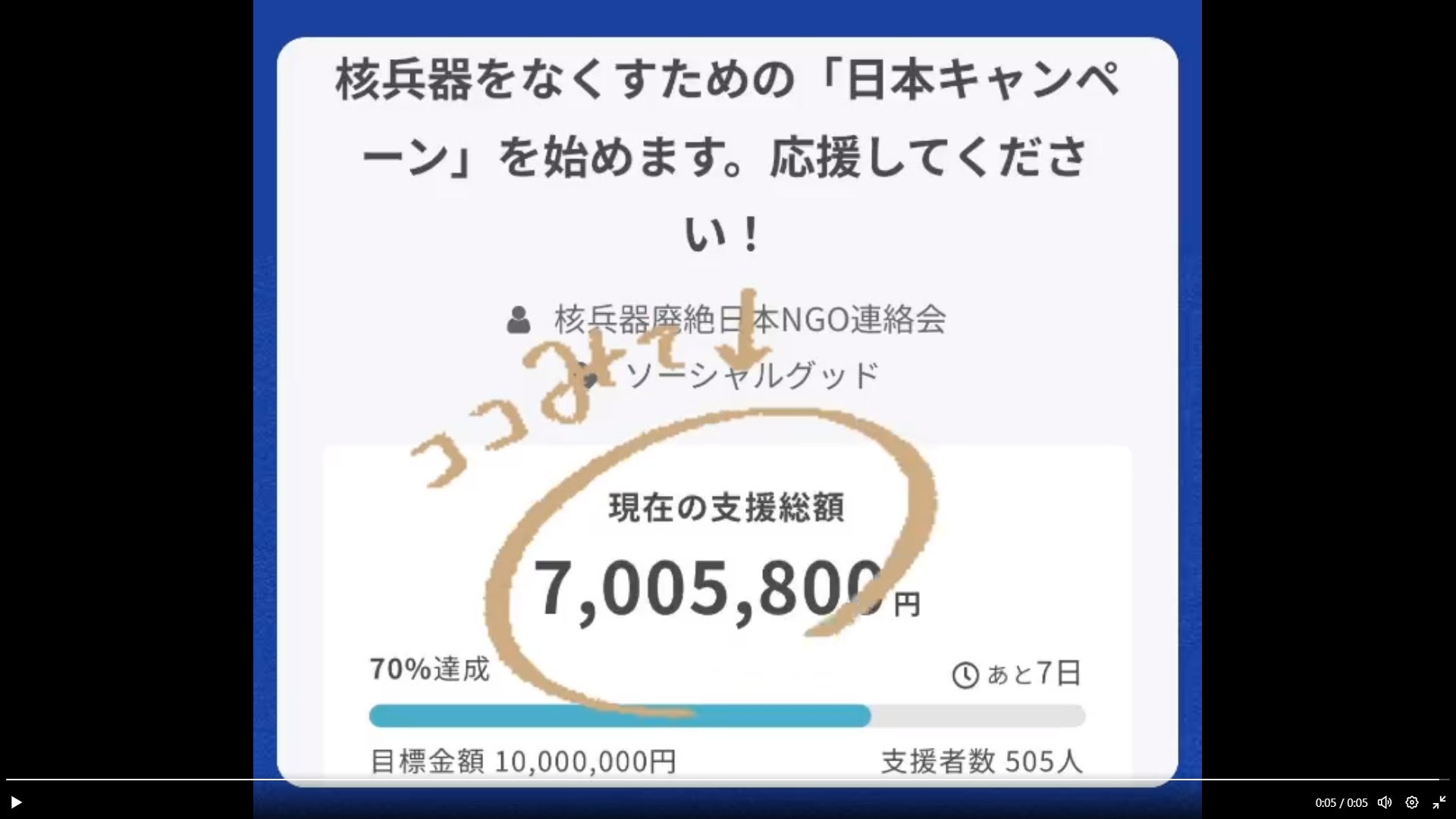 大変うれしく思います!これまでに702万8800円、509人(9/14現在)の方からご支援いただきました。感謝申し上げます。すべての議員に繰り返し働きかけ、核兵器禁止条約参加を目指します。そのために目標1000万円に向けて、【残り7日】、多くのご賛同を集めていきたいと思います。