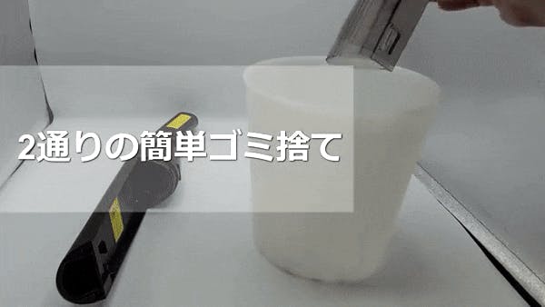 IZELL-Y02BSには「ダストボックスを外さず捨てる」「ダストボックスを取り外して捨てる」の2通りのゴミ捨て方法があります。
