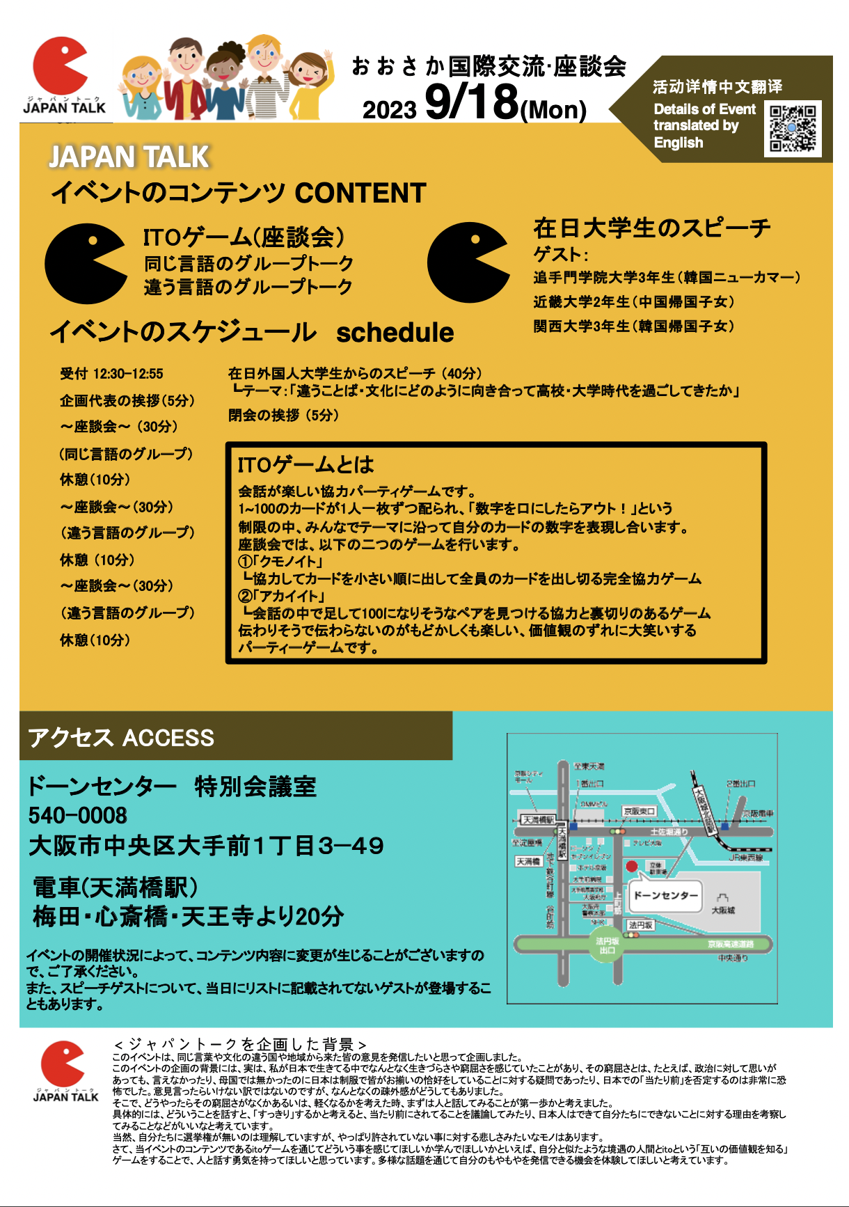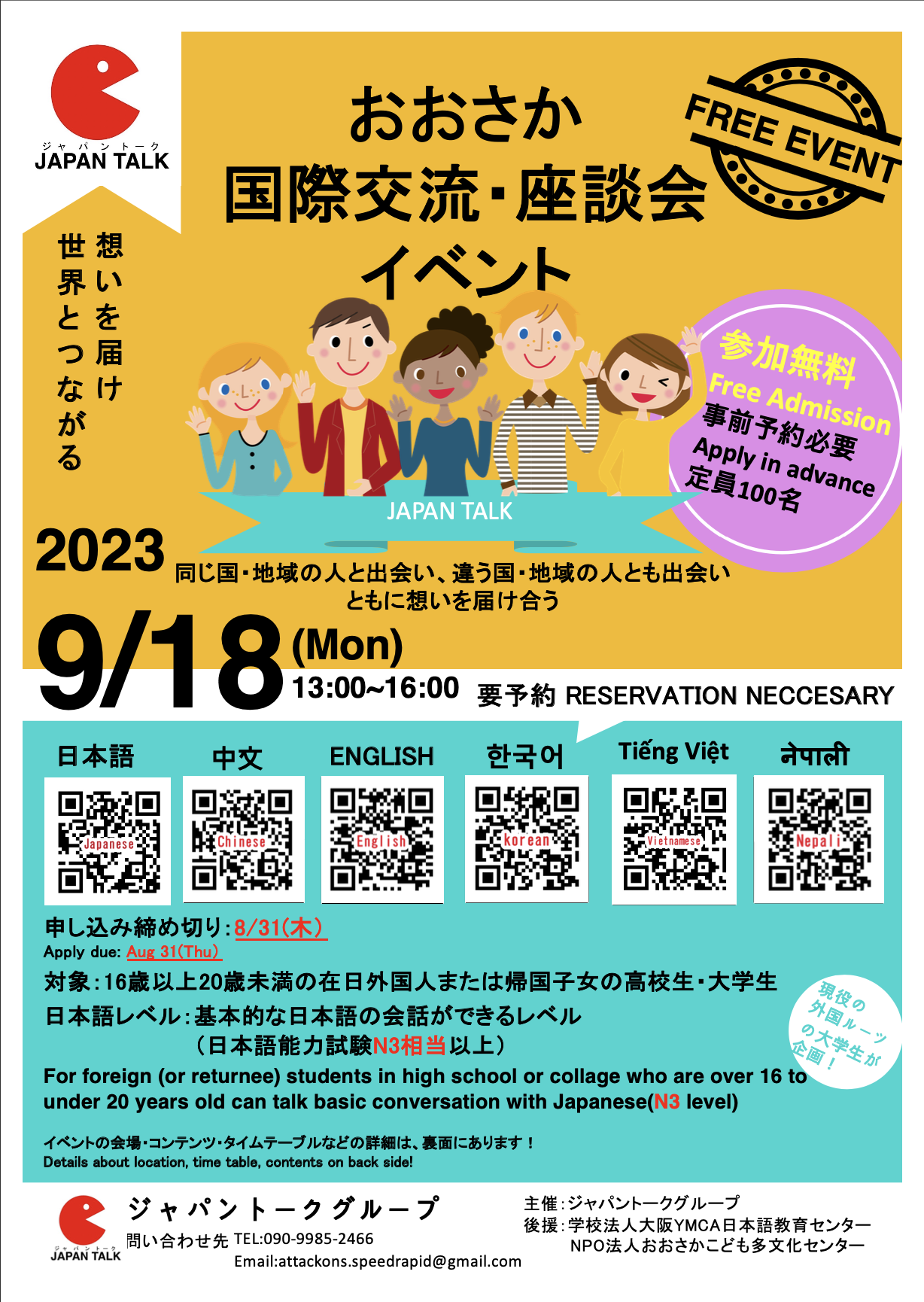後援:NPO法人おおさかこども多文化センター(広報協力)・大阪YMCA日本語教育センター(広報協力)
