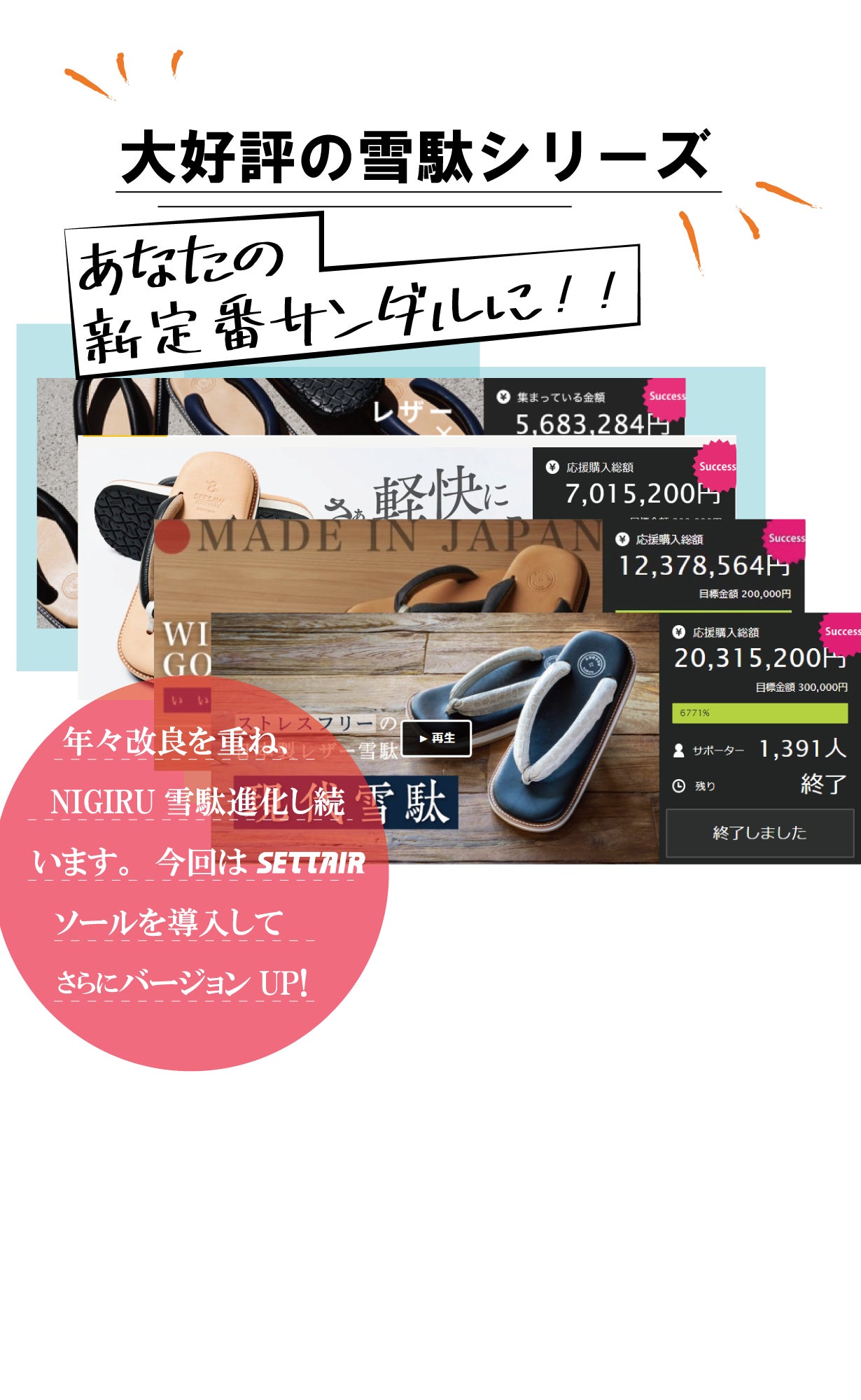 2023/08/09 19:12ご支援いただきました皆様へ。こんばんは。株式会社リフトです。昨日を持ちまして、「靴の街浅草が生み出す 現代のレザー雪駄」プロジェクト先行予約販売を終了させていただきました。改めまして、今回ご支援くださった皆様、誠にありがとうございます。Campfireでの挑戦、成功するか不安な面もありましたが、ご支援いただいた皆様のおかげで、走り切ることが出来ました!これからはお届けに向け、生産を進めて参ります。進捗や配送状況等随時こちらでご報告させていただきますので、今しばらくお待ちいただけますと幸いです。今後とも、株式会社リフトをどうぞよろしくお願い致します。 もっと見る