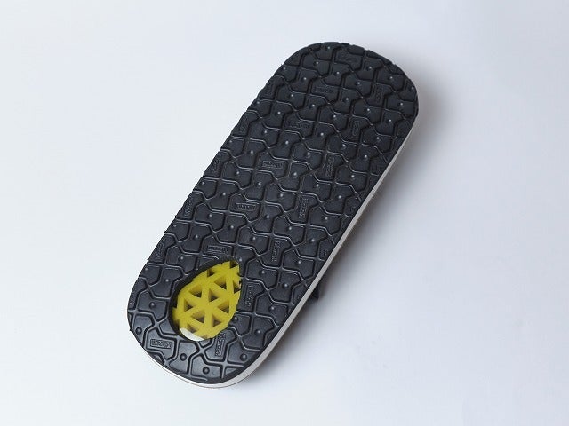 一般的なミッドソール用スポンジに比べ優れた反発弾性率をもつ「トランスイエロー」は、車のサスペンションのような役割を果たし、歩行時の衝撃を吸収します。