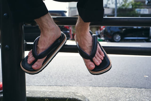 伝統的な雪駄は前坪や鼻緒といったパーツが対称で、左右の区別がありません。