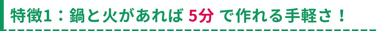 どんな環境でも「鍋と火さえあれば5分ほどで調理できる」のが大きな特徴です。