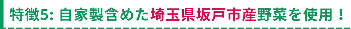 ⑤ 自家製含めた埼玉県坂戸市産野菜を使用!