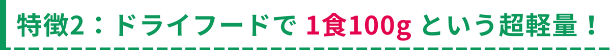 ② ドライフードで1食100gという超軽量!