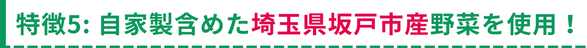 ⑤ 自家製含めた埼玉県坂戸市産野菜を使用!